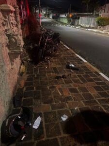 Um grave acidente de trânsito foi registrado por volta das 4h30 da madrugada deste sábado, na Rua Santa Cruz, próximo ao número 39. Segundo informações preliminares, um motociclista perdeu o controle da moto e acabou colidindo violentamente contra um poste.